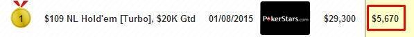 Sunday Million за $215 также принес две выплаты казахстанцам. В турнире зарегистрировалось 5,704 игрока, а призовой фонд составил $1,140,800 (первое место — $178,423). «no_hedge77» получил $684.48 за 166 место и «kekus505» — $467.72 за 360 место.
