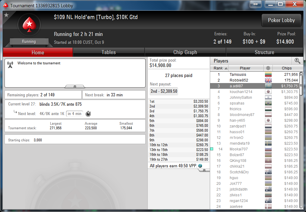 Отметим и игрока под ником «arhimagger«, который вышел за финальный стол Главного события с бай-ином $0.99 новой микролимитной онлайн-серии Common Cents. В турнире приняло участие 42,144 (!) игрока, а призовой фонд составил $37,929. Наш игрок занял 7 место и получил $304.95.