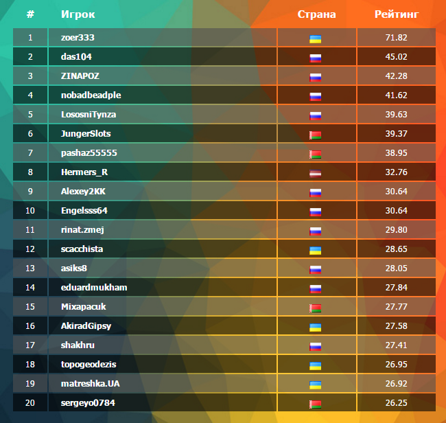 Впервые в еженедельных обзорах мы не увидим игроков из Казахстана в лидерборде.