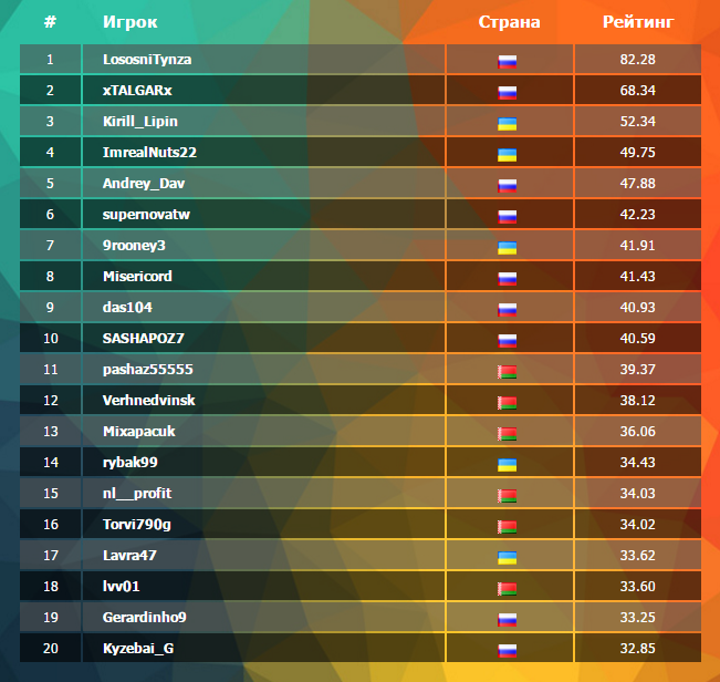 Таблица лидеров на 23 ноября 2015: