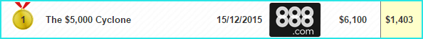 1 место в турнире на 888Poker The Cyclone $55, $5К Gtd — $1,403