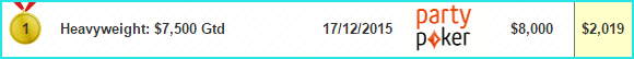 1 место в турнире на PartyPoker Heavyweight $109, $7,5К Gtd — $2,019