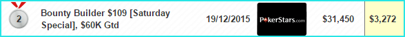 2 место в турнире на PokerStars Bounty Builder $109, $60K Gtd — $3,272