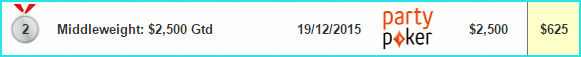 2 место в турнире на PartyPoker Middleweight $55, $2,5К Gtd — $625