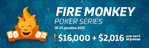 В комнате LotosPoker 18 декабря стартовала онлайн-серия Fire Monkey Poker Series. В рамках неё будет проведено 16 турниров, последний намечен на 27 декабря. Гарантированный фонд серии составляет более $16,000. Но кроме фонда, покер-рум дополнительно раздаст денежные призы лучшим пяти игрокам серии: