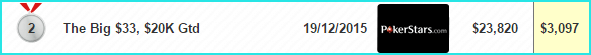 2 место в турнире на PokerStars The Big $33, $20K Gtd — $3,097