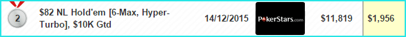 2 место в турнире на PokerStars $82 NL Hold’em [6-Max, Hyper-Turbo], $10K Gtd — $1,956