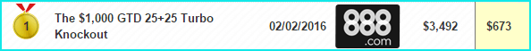 1 место на 888Poker за $50 Turbo Knockout, $1K Gtd — $673