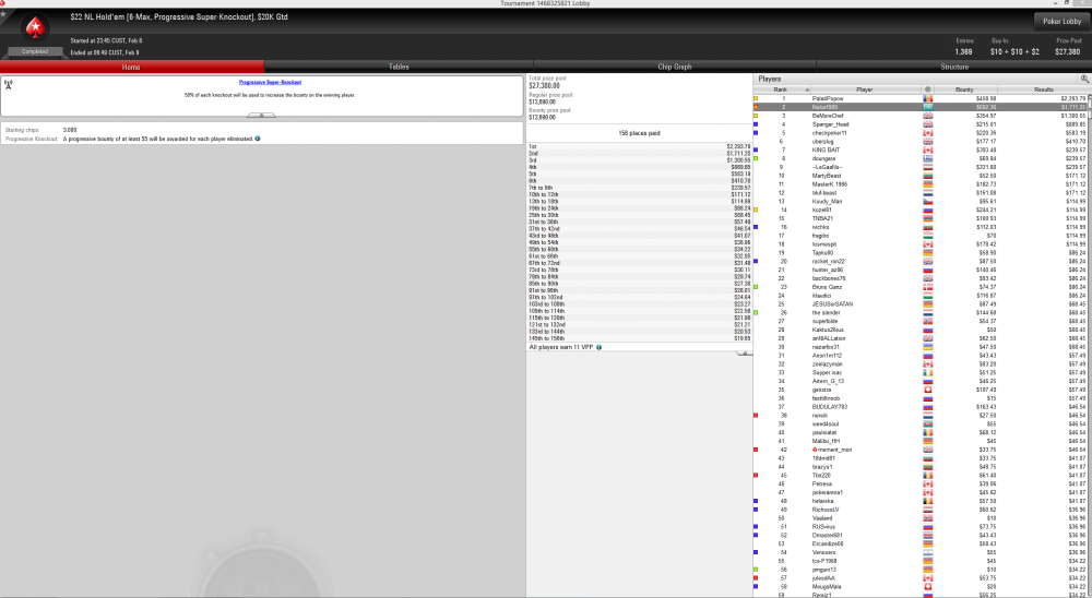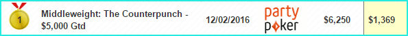 1 место на PartyPoker за $55 Middleweight: The Counterpunch, $5K Gtd — $1,369