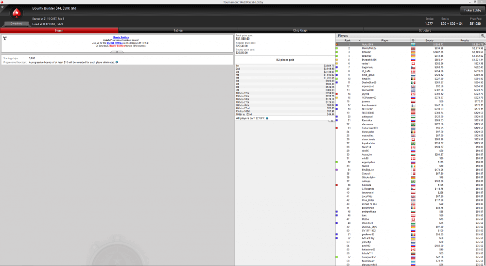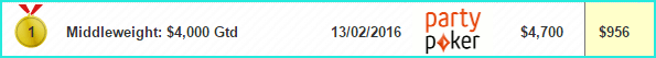 1 место на PartyPoker за $22 Middleweight, $4K Gtd — $956