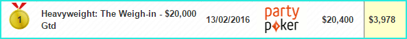 1 место на PartyPoker за $109 Heavyweight: The Weigh-in, $20K Gtd — $3,978