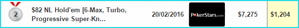 2 место на PokerStars за $82 6-Max, Turbo, Progressive SKO, $8K Gtd — $1,204