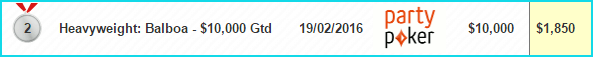 2 место на PartyPoker за $109 Heavyweight: Balboa, $10K Gtd — $1,850