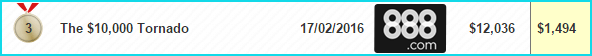3 место на 888Poker за $109 Tornado, $10K Gtd — $1,494