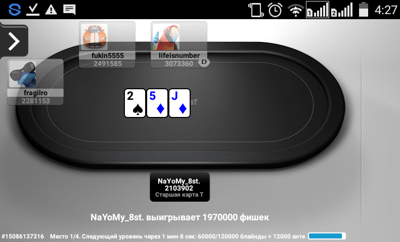 4 место на PartyPoker за $109 Heavyweight: The Uppercut, $50K Gtd — $4,000