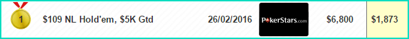 1 место на PokerStars за $109 NL Hold’em, $5K Gtd — $1,873