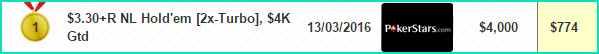 1 место на PokerStars за $3,30+R, $4K Gtd — $774