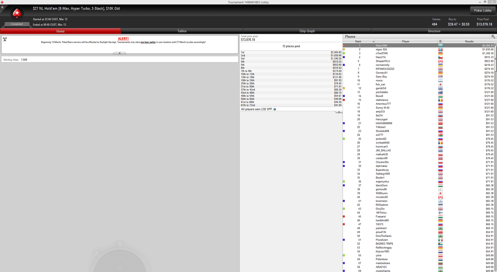В сети 888 (LotosPoker и 888Poker) “manipuliator” в The Crocodile за $160 и гарантией в $70,000 заработал $339.10, завершив турнир на 54 месте.
