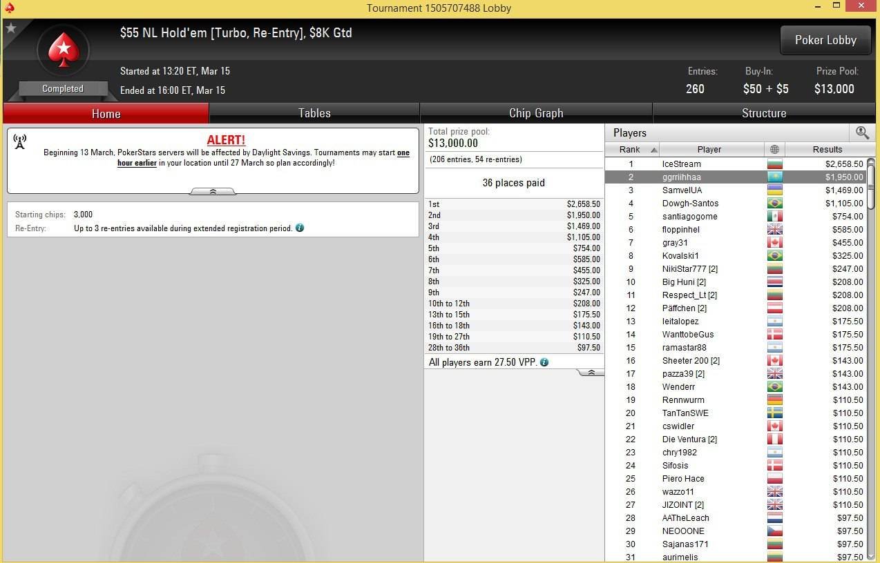 2 место на PokerStars в Big 33, $18K Gtd — $2,430