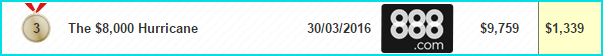 3 место на 888Poker за $109 The Hurricane, $8K Gtd — $1,339