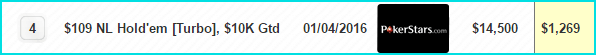 4 место на PokerStars за $109, $10K Gtd — $1,269
