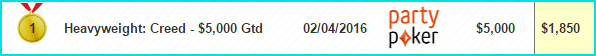 1 место на PatyPoker за $109, $5K Gtd — $1,850