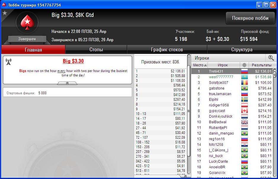 Прошедшая неделя стала довольно результативной для наших игроков: «Joker10» выиграл Хот $162, Адиль занял 8 место в Биг $55 и 3 место в Биг $109, вторые места в турнирах занимали Евгений, Данияр и «volkov277».