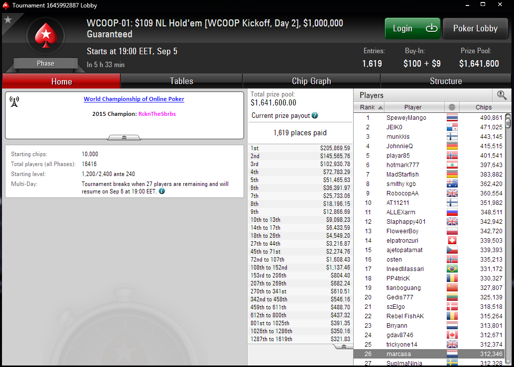 Этот ивент игрался фазами, а игроки, которые прошли их, сегодня в 22:00 АЛА встретятся за игровыми онлайн-столами. Четыре казахстанца продолжат борьбу за главный приз в размере чуть более $200К. На данный момент все игроки турнира уже в призах, минимальный составляет $321,83 (полная структура выплат представлена на скрине ниже).