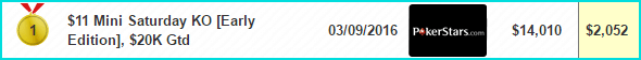 1 место на PokerStars за $11, $20К Gtd — $2,052