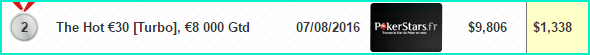 2 место на PokerStars.fr The Hot €30, €8K Gtd — €1,338