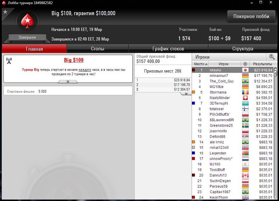 Шынгыс “3DTemujiN” занял 7 место в Big $109, за что был награжден $3,3К.
