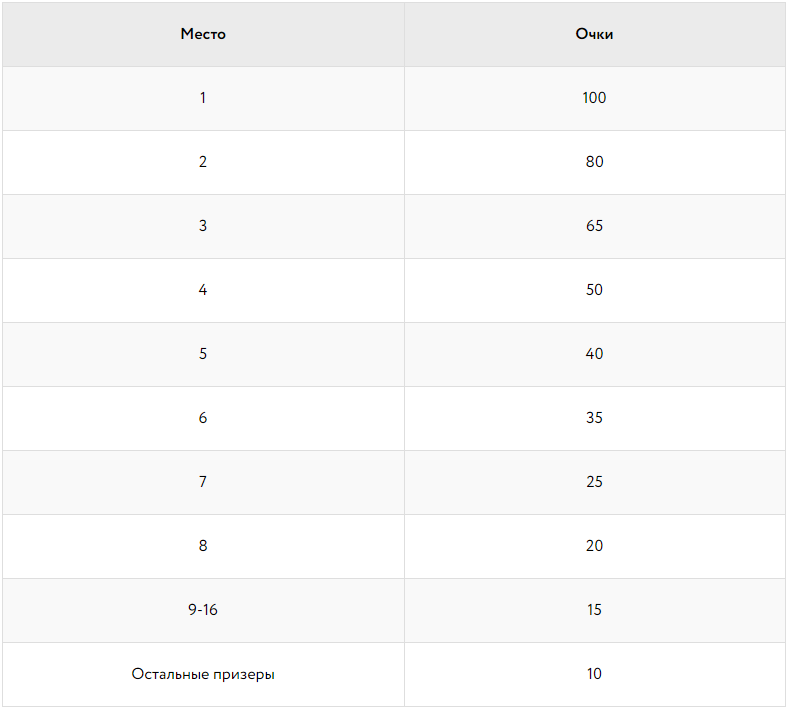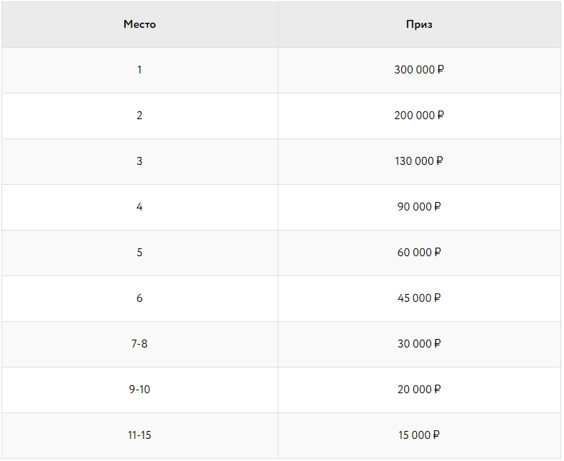 - 1 000 000 ₽ в таблице лидеров чемпионата;