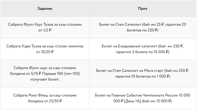 - В миссиях принимают участие все рублевые кеш столы Холдема, кроме TWICE столов.