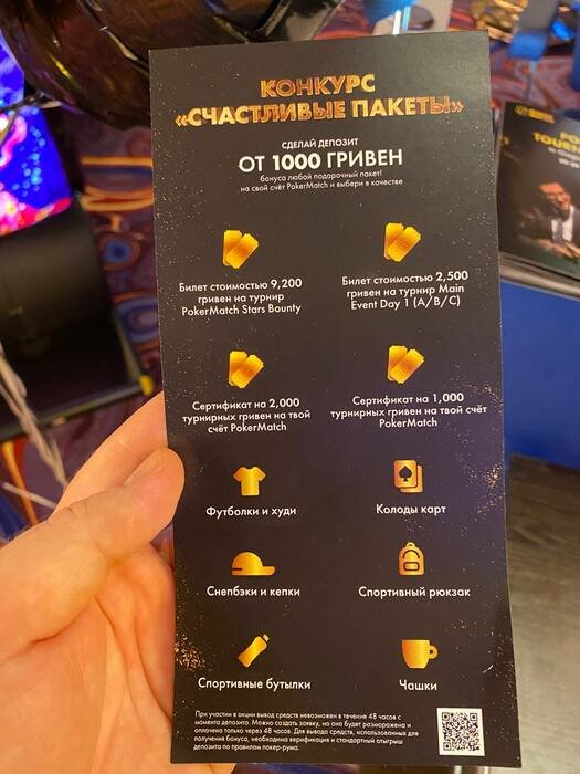 Кстати, на серии тут каждый день разные розыгрыши от PokerMatch. Поскольку я собираю мерч разных серий и стран, то очень хотел выиграть майку-кепку. На худой конец 9200 гривен. Был близок.