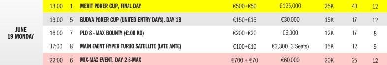 За два стартовых дня и в основном Дне 2, когда регистрация ещё была возможна, турнир привлек 245 входов. Призовые выплаты Мерит Покер Кап начинаются с 26 места. Минимальный кэш составит €980, а чемпион заберет €27,360!