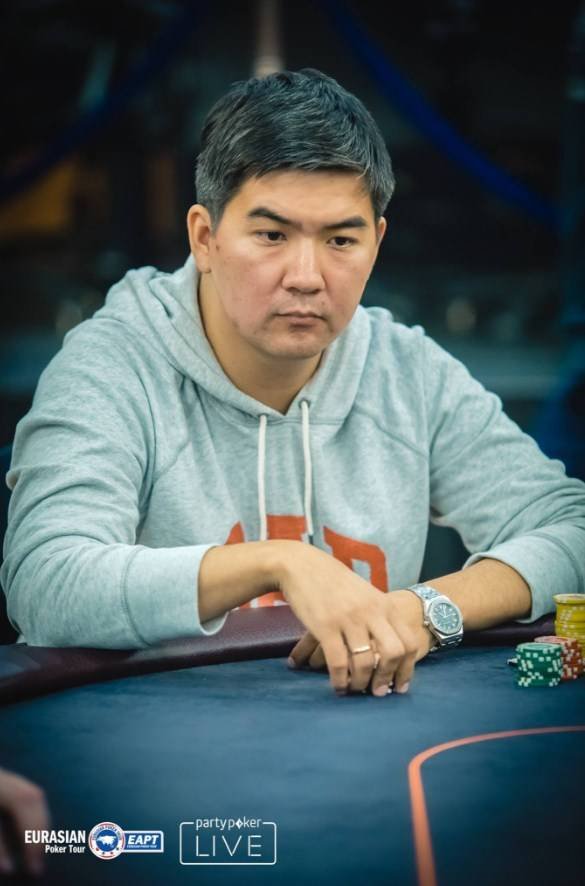Вчера прошёл первый стартовый день одного из трёх фирменных турниров серии — Kazakhstan Poker Championship. Бай-ин 550, гарантия 100К. И у нас 33 входа, 15 прошли во второй день. Чиплидером является наш постоянный гость из России — Булат Бикметов, у него 191 000, при стартовом в 25 000.