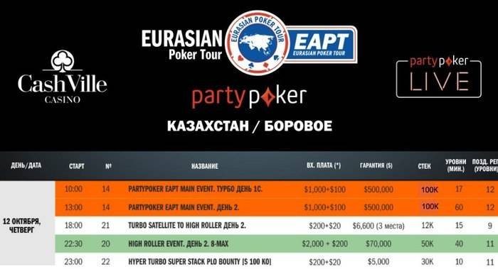 За спиной второй стартовый день Главного события partypoker EAPT Казахстан с бай-ином $1,100 и гарантией $500,000.