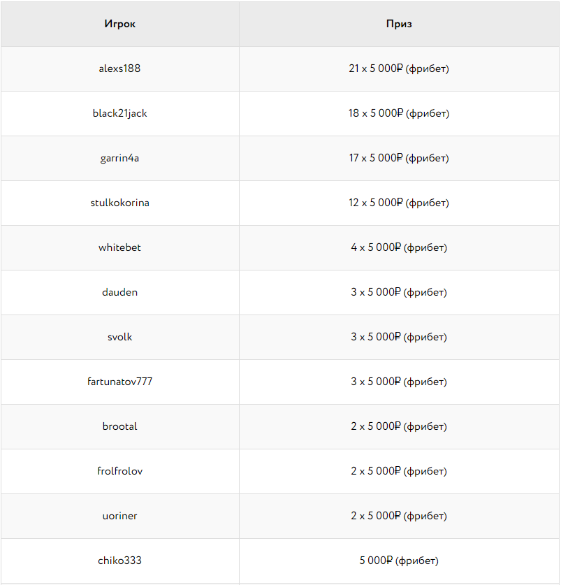 Мы провели специальную лотерею, где разыграли 100 фрибетов по 5 000 ₽!