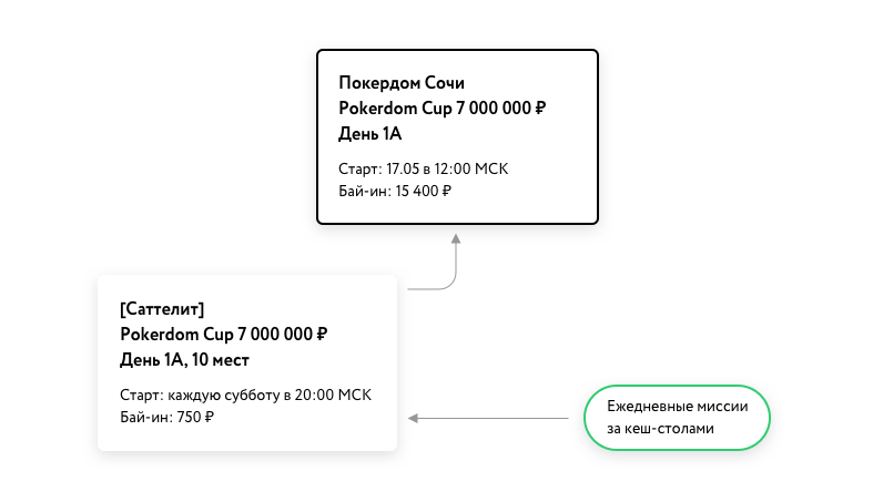С 16 марта по 12 мая, каждую субботу, мы будет проводить еженедельный сателлит к живому событию Pokerdom Cup 7 000 000 ₽.