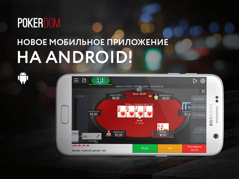 PokerDom представил новый клиент для мобильных устройств на базе Android. В новом приложении сохранен весь привычный функционал из предыдущей версии, однако, благодаря усовершенствованному интерфейсу юзабилити нового клиента значительно возросло. Для приложения разработан новый «движок», обеспечивающий высокую скорость работы и плавные переходы между окнами.