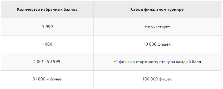 Распределение стартового стека в бесплатном финальном турнире
