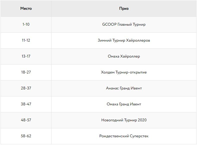 По условиям лотереи было разыграно 62 турнирных билетов к Зимнему GCOOP на сумму 200 000 ₽ между всеми участниками акции, получившими один или несколько индивидуальных лотерейных билетов.