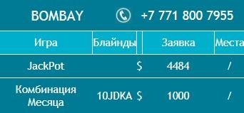 Каждый вечер в «Bombay» проходят кэш-игры и собираются столы от 1-2$ по холдему и до 5-10$ по омахе.