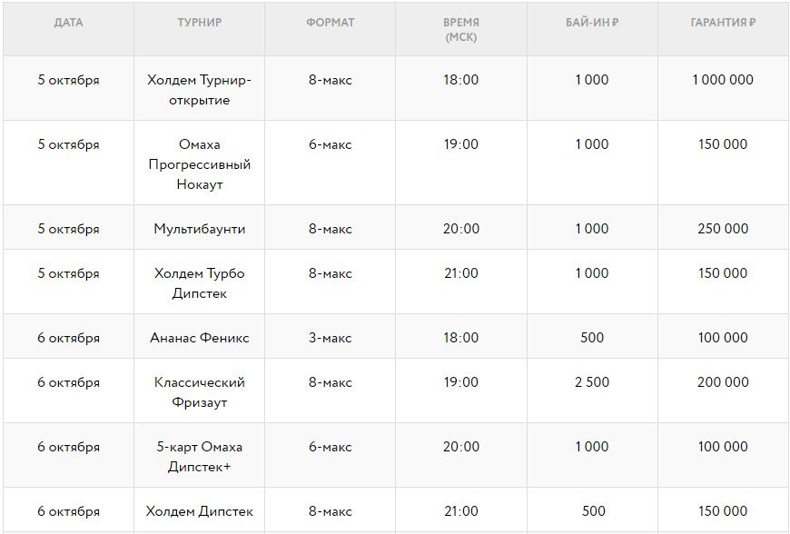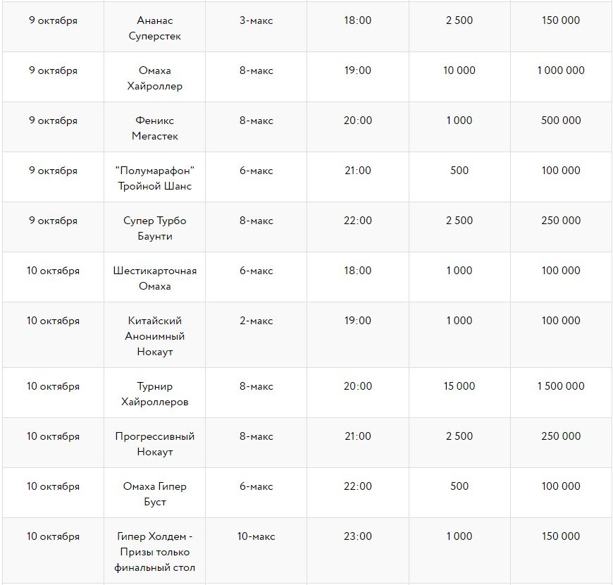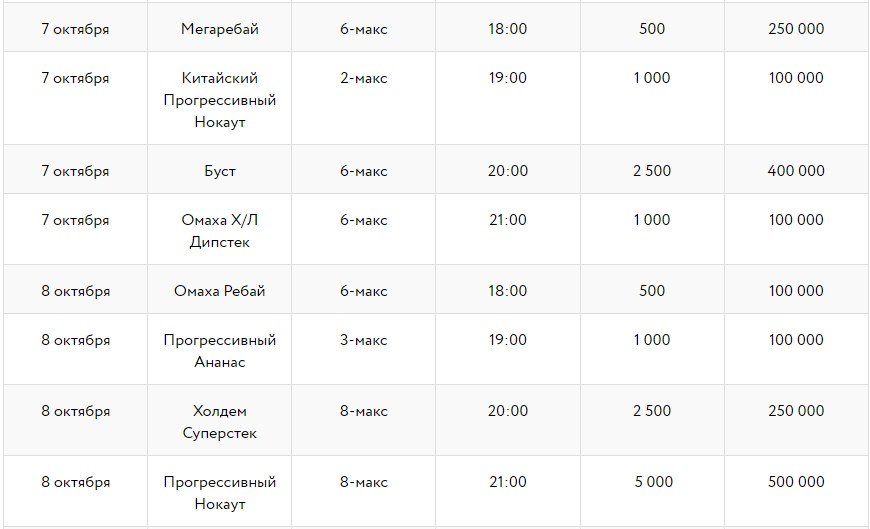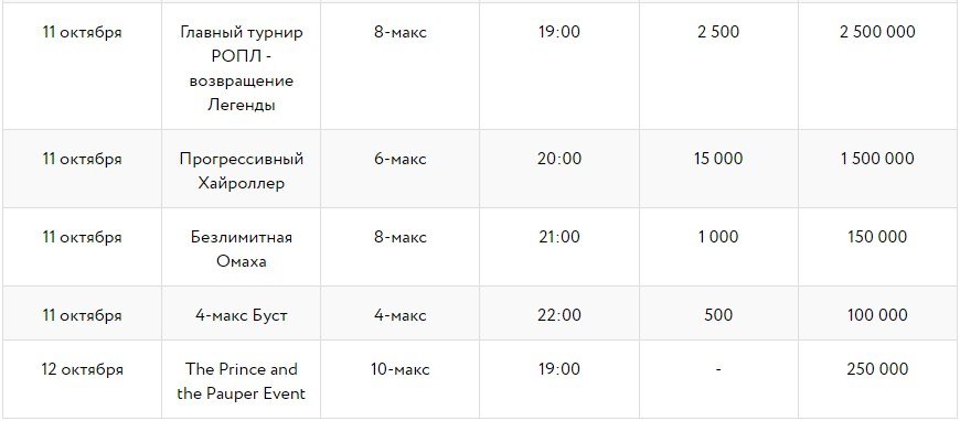 - Акция «Российская онлайн-покер лига» пройдет с 5 по 11 октября.