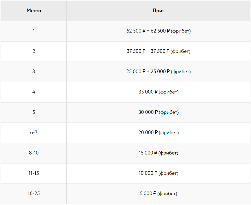 Минимальный размер ставки для участия в турнире составляет 100 ₽.