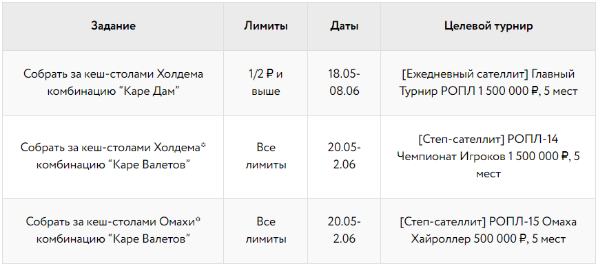— две таблицы лидеров покерных турниров с общим призовым фондом 1 250 000 ₽;