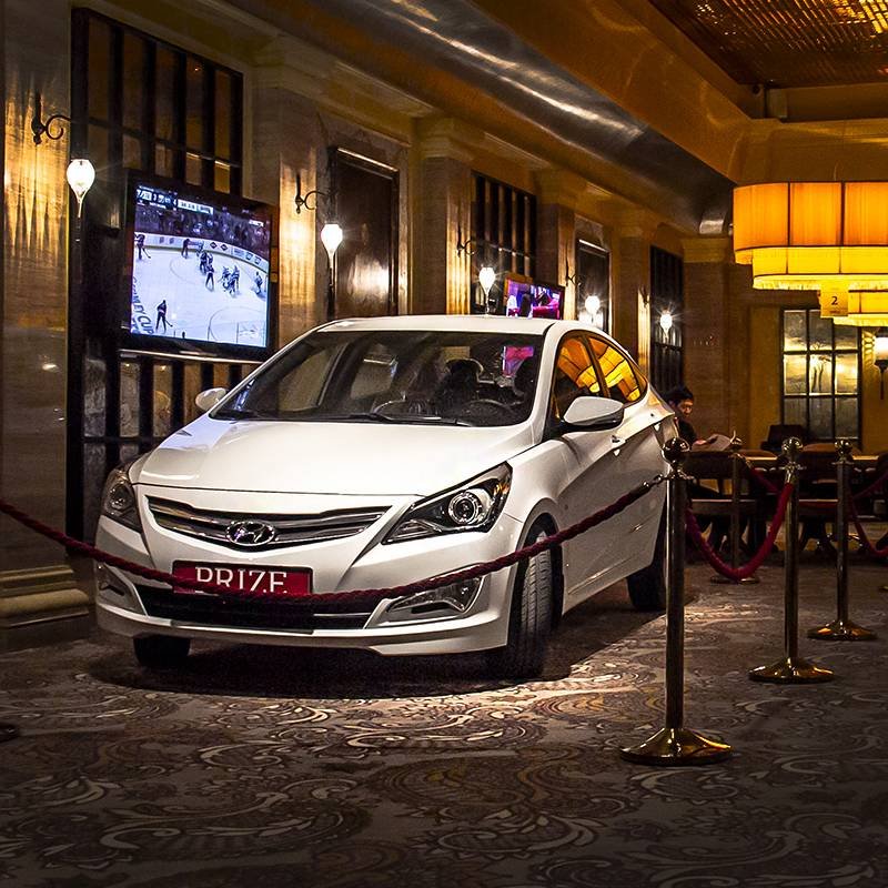 Розыгрыш автомобиля будет происходить по следующей схеме: за кэш-игру выдают билеты, которые опускаются в лототрон. При помощи экстрагирования билетов из лототрона определяются 9 финалистов, которые сыграют в покерном турнире. Победитель этого турнира и получит автомобиль.