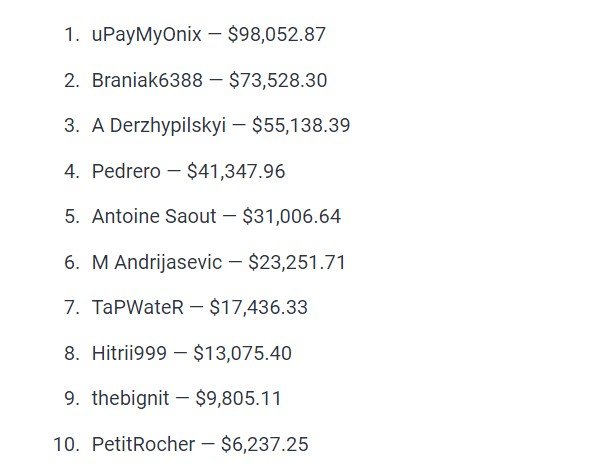 Также отметим ещё одно 3-место Лаврения в Winter Series, за что он получил $13,7K.