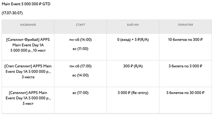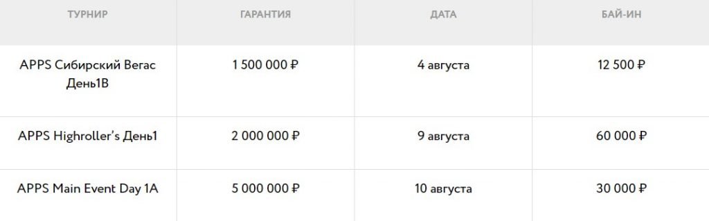 APPS Main Event Day 1A с бай-ином 30,000 рублей и гарантией 5,000,000 рублей, который пройдет 10 августа.