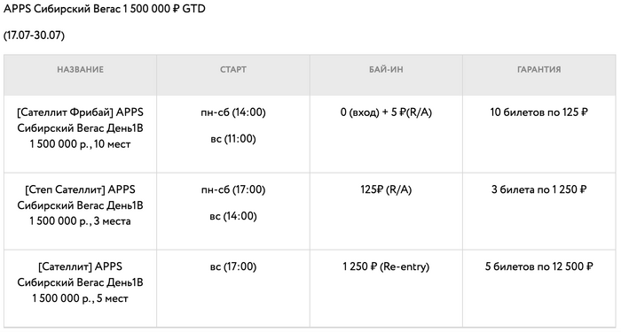 APPS Сибирский Вегас День1B с бай-ином 12,500 рублей и гарантией 1,500,000 рублей, который состоится 4 августа.